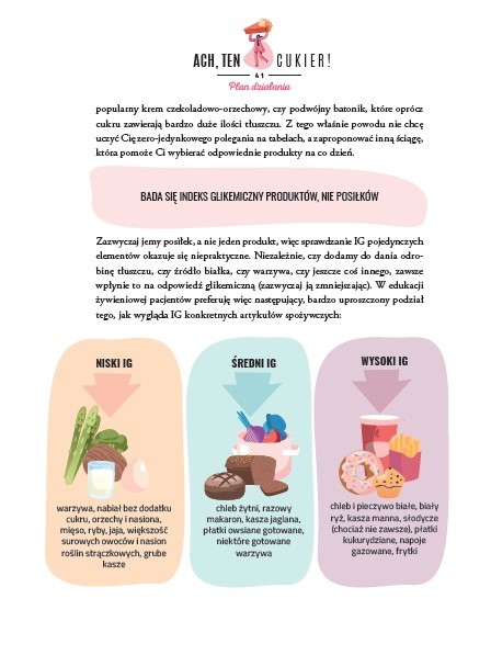 Z książki dowiemy się między innymi, jakie są rodzaje cukrzycy i czym się ona różni od insulinooporności. Co to jest indeks glikemiczny i jak najkorzystniej łączyć składniki w domowym menu dla naszego zdrowia? Autorka zanalizowała też najbardziej popularne dzisiaj diety odchudzające pod kątem bezpieczeństwa dla osób cierpiących na te schorzenia. Podpowiada, jakie dania zamawiać, kiedy nie możemy zjeść w domu. Jak komponować prawidłowo posiłki i jak łączyć je z aktywnością fizyczną?