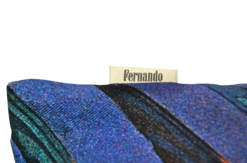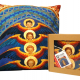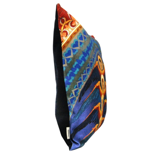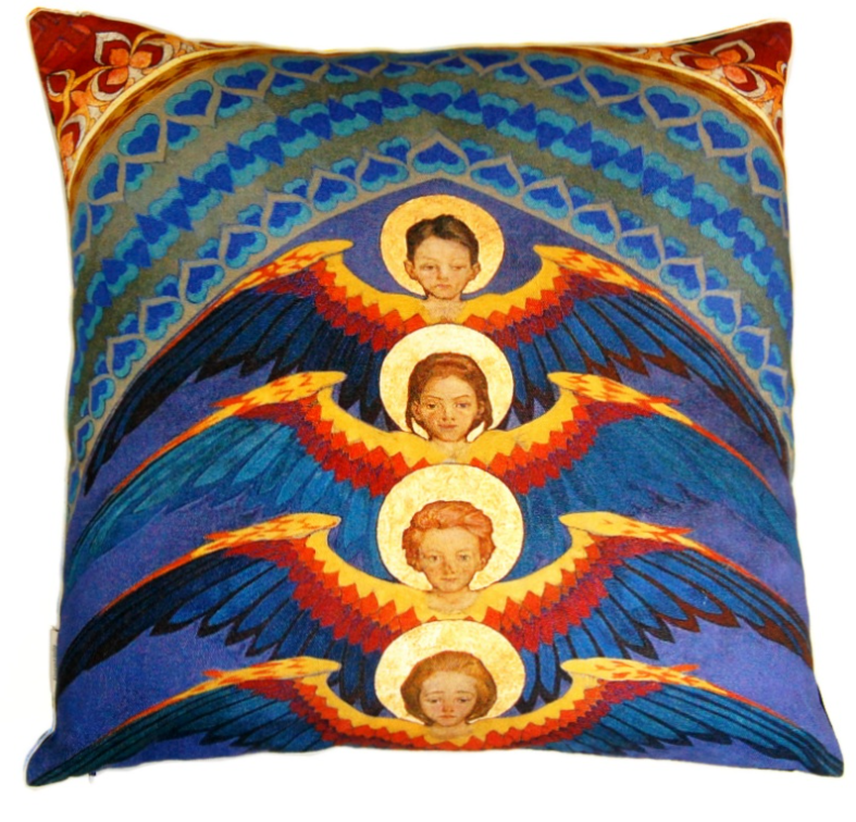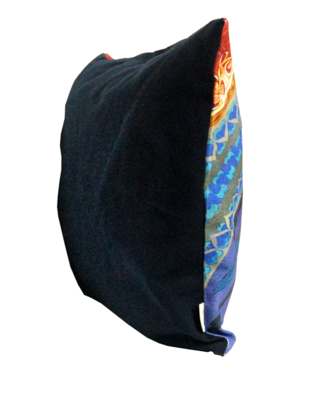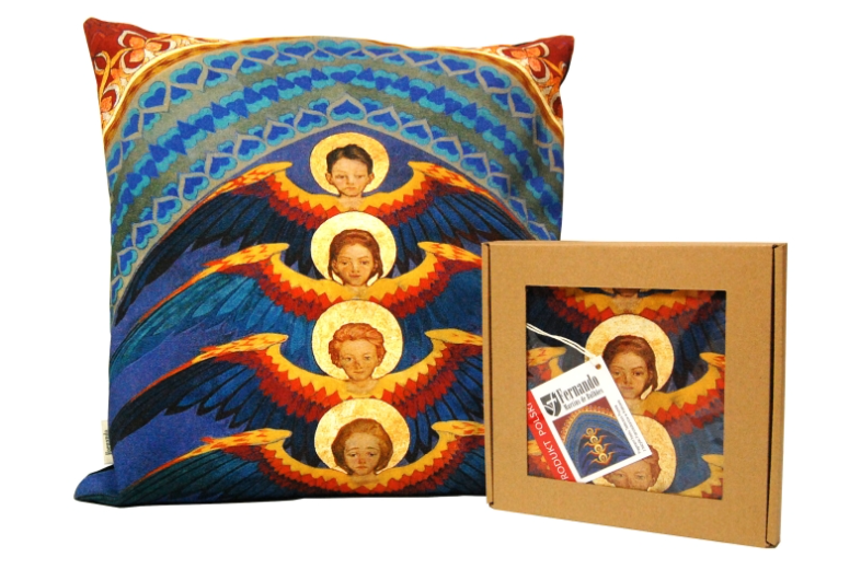 Poszewka na poduszkę - z tyłem w kolorze ciemnego granatu, zadrukowana oryginalną, niepowtarzalną grafiką w pięknych barwach, przedstawiającą fragment polichromii autorstwa Tadeusza Popiela, znajdującej się w bazylice Franciszkanów w Krakowie.