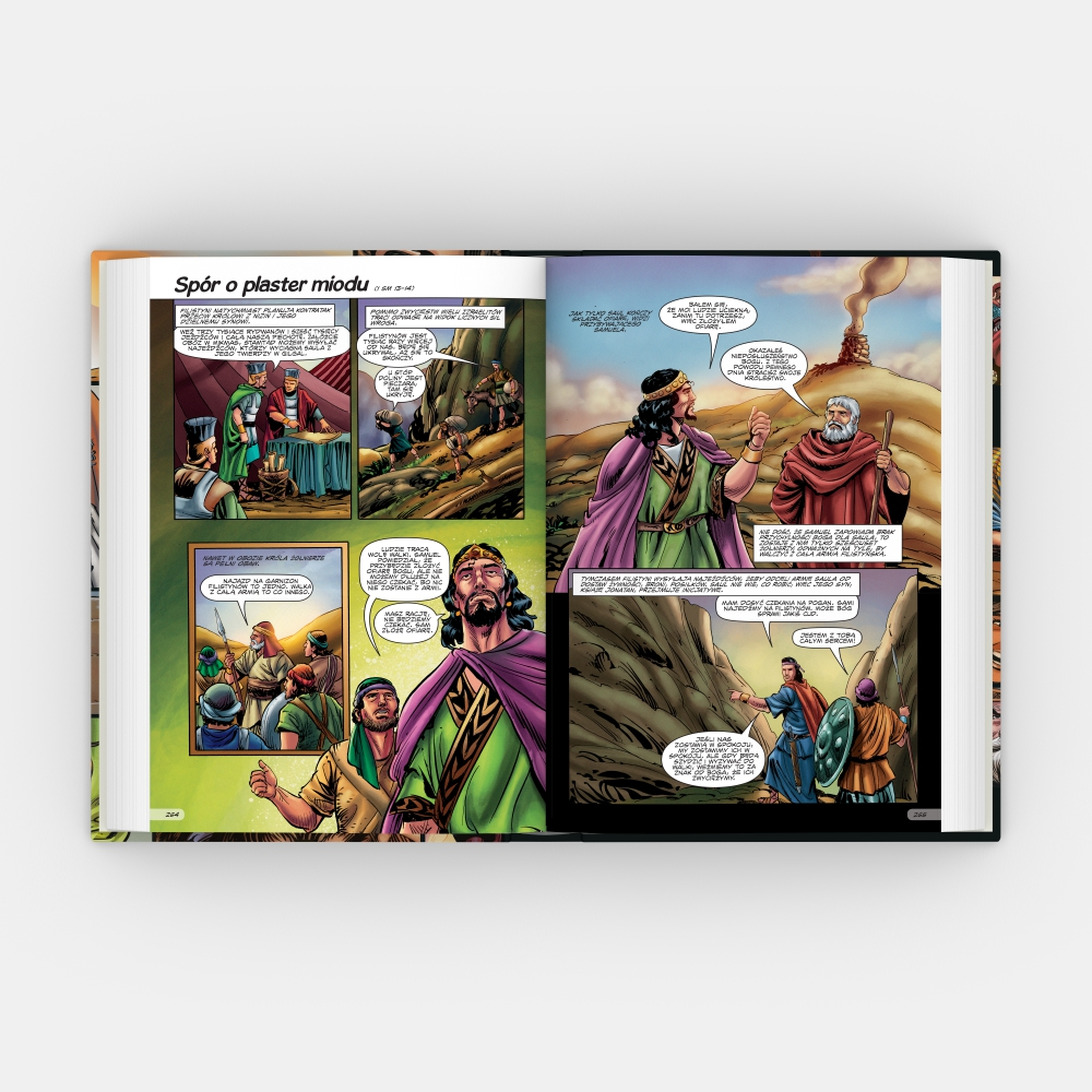 W nowej poszerzonej wersji bestsellerowego wydania Biblii Komiks znajdziemy dodatkowe 128 stron przygód biblijnych bohaterów. Nowe opowieści zachęcają do jeszcze lepszego zrozumienia historii zbawienia i postaci, które odmieniły losy wielu narodów i świata.