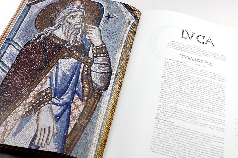 Oryginalny album z najnowszym wydaniem tekstu Nowego Testamentu, zilustrowanym pięknymi mozaikami z bazyliki św. Marka w Wenecji oraz opatrzonym profesjonalnymi komentarzami.