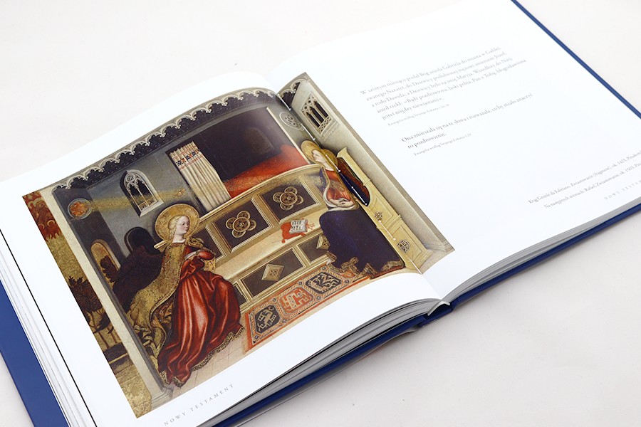 Kluczem wyboru zamieszczonych w albumie arcydzieł były dzieje zbawienie człowieka, od momentu stwórczego „Niech się stanie...”, aż po nadchodzący dzień Sądu Ostatecznego. Układ książki odpowiada więc kolejności ksiąg biblijnych, najpierw Starego, następnie Nowego Testamentu. Publikacja ma przede wszystkim walor wizualny, co jednak w tym przypadku, prezentacji dawnych dzieł, a takie znalazły się w ogromnej przewadze w albumie, daleko wykracza poza ich funkcję ilustrującą, a staje się niezwykle sugestywną opowieścią i skarbcem silnie przemawiających gestów i symboli. Obrazy są komentowane odpowiadającymi im fragmentami Pisma Świętego, zostały opatrzone krótkimi opisami obejmującymi autora, tytuł, czas powstania i miejsce, jakie zajmują w watykańskich przestrzeniach.
