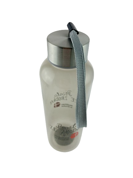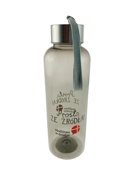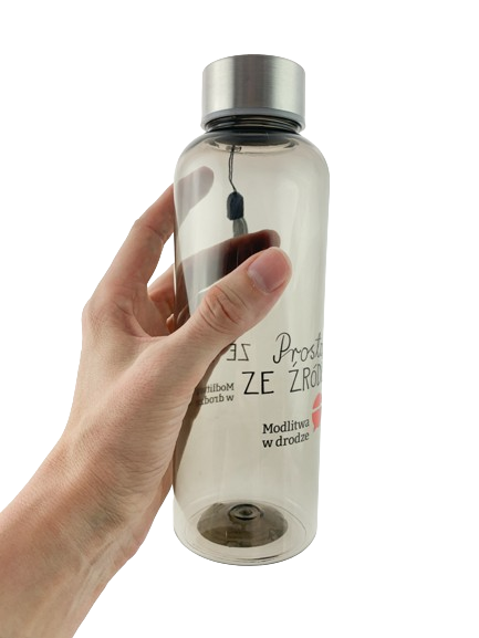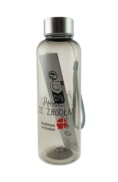 Jednowarstwowy bidon z serii Modlitwa w drodze, który można zabrać w drogę. Stworzony z wytrzymałego materiału, z zakrętką. Butelka jest odporna na rozbicie, plamy i zapach. Zakrętka posiada pasek do łatwego przenoszenia. Plastik jest wolny od BPA.