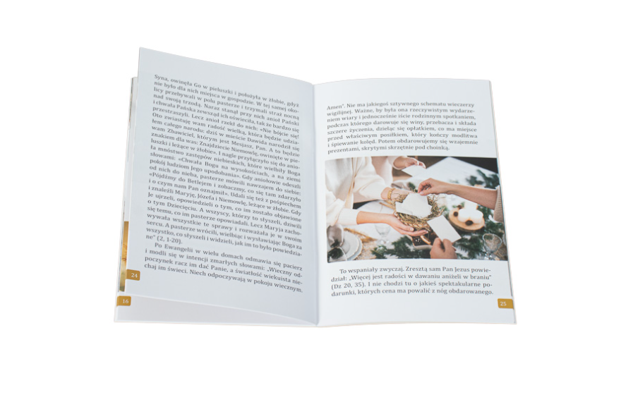 - trzecia (katechetyczno-pastoralna) zawiera m.in.: opis wieczerzy wigilijnej, niektórych świątecznych zwyczajów oraz znaczenie wizyty duszpasterskiej, czyli kolędy.