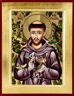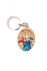 Solidny i lekki breloczek z drewna oliwnego, ozdobiony wizerunkiem św. Franciszka, patrona zwierząt, ekologów i miłośników natury.