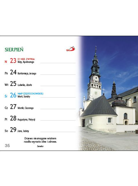 Kalendarz wyróżniają inspirujące i pełne miłości cytaty, które zwracają uwagę na to, że nie jesteśmy pozostawieni sami sobie, przypominają, co tak naprawdę w życiu jest ważne i motywują do działania. To piękne słowa, które pomogą Ci lepiej przeżyć każdy dzień 2026 roku.