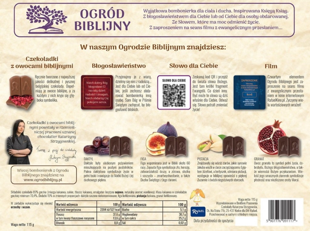 Wyjątkowa bombonierka dla ciała i ducha. Inspirowana Księgą Ksiąg. Z błogosławieństwem dla Ciebie lub od Ciebie dla osoby obdarowanej. Ze Słowem, które ma moc odmienić życie. Z zaproszeniem na seans filmu z ewangelicznym przesłaniem...