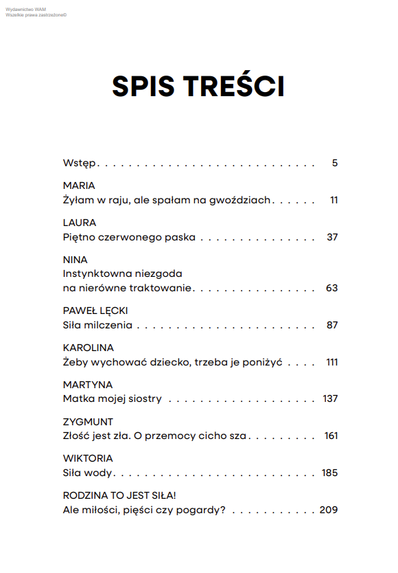 Osiem wstrząsających historii. Osiem mrocznych dróg dorastania. Bicie kablem, ręką, słowem. Upokorzenia pod szkolną tablicą, gdzie wstyd staje się publicznym spektaklem. Parentyfikacja, kiedy dziecko musi stać się dorosłym, zanim zdąży być dzieckiem.