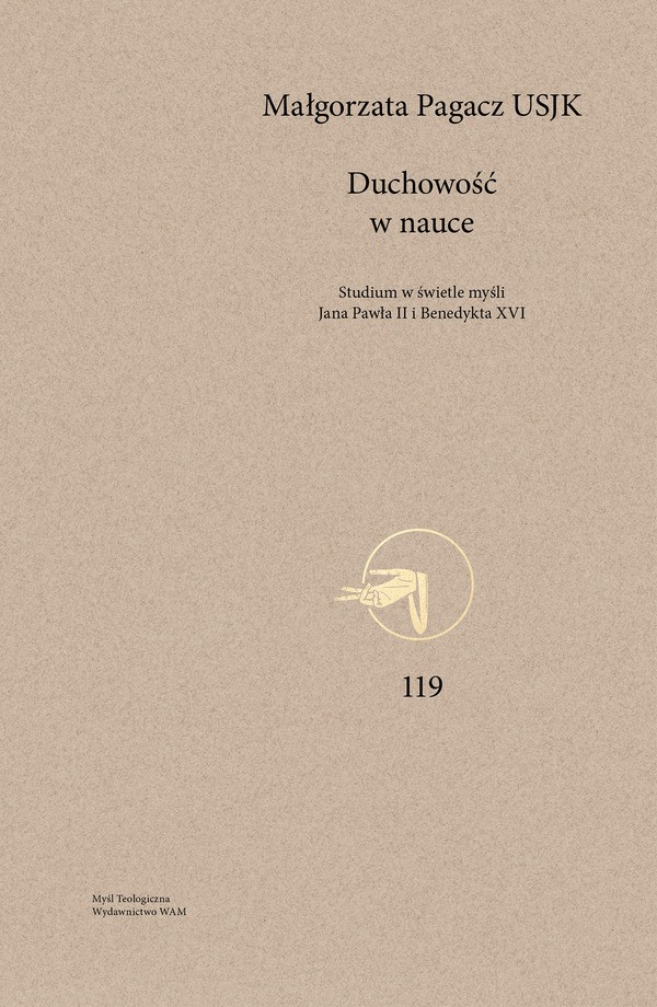 Książka s. Małgorzaty Pagacz USJK jest obszernym studium, poświęconym relacji pomiędzy wiarą chrześcijańską a naukami przyrodniczymi – ich odniesieniu ujętemu w perspektywie teologii duchowości. Uprawianie nauk przyrodniczych przez ludzi wierzących i postrzeganie tego zaangażowania w kategoriach rzeczywistego powołania chrześcijańskiego pociąga za sobą pytania o specyfikę duchowości uczonego, zajmującego się naukami przyrodniczymi, proces jego duchowego rozwoju w kontekście pracy naukowej oraz istnienie i rozumienie duchowości w nauce. Autorka poddaje analizie teksty papieży: Jana Pawła II i Benedykta XVI. Na tej podstawie kreśli ona interesujący zarys koncepcji duchowości w nauce, którą należy z jednej strony traktować jako subdyscyplinę teologii nauki, a z drugiej – jako nurt we współczesnej duchowości chrześcijańskiej.