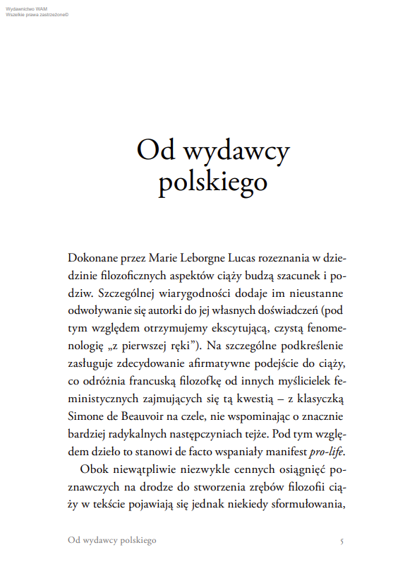 Ciało każdej kobiety jest wyjątkowe. Cykl menstruacyjny, ciąża i poród to tylko niektóre z jego cudów. Marie Leborgne Lucas, francuska filozofka, w swojej książce dzieli się poruszającą i pełną wrażliwości refleksją na temat ciąży jako głębokiej przemiany emocjonalnej i egzystencjalnej.