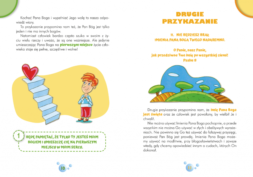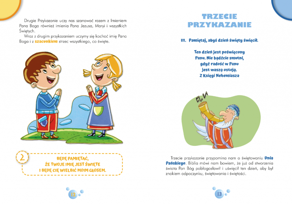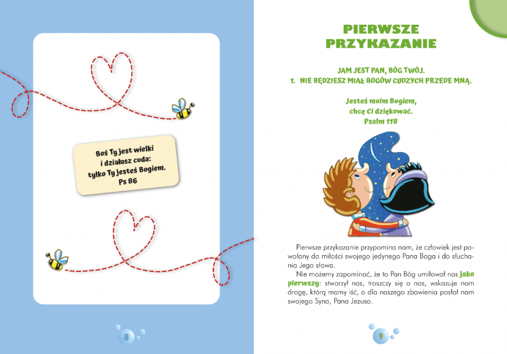 Na jej 32 stronach znajdziemy wiele cennych informacji dotyczących dziesięciu przykazań Bożych (każde przykazanie zostało wytłumaczone prostym językiem, zrozumiałym dla małych odbiorców), które pomogą nam mądrze kroczyć przez życie.