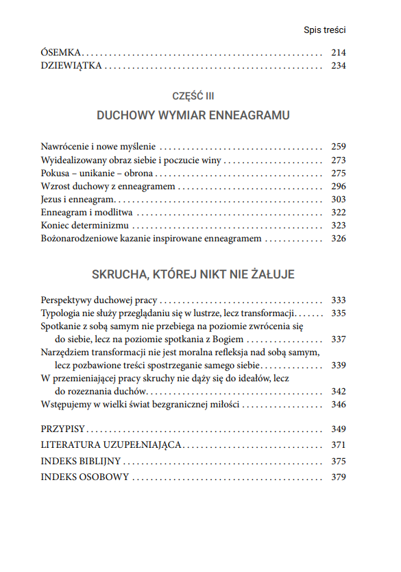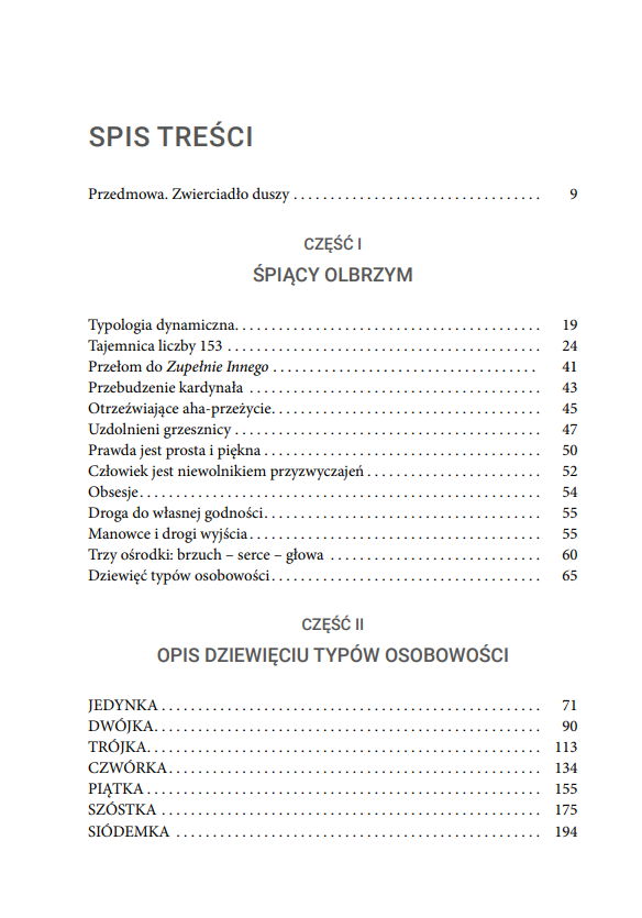 Książka zawiera szczegółową charakterystykę dziewięciu typów osobowości, przedstawia ich cechy oraz wewnętrzną dynamikę, która skłania człowieka do zmian. Ujęte w niej wskazówki pomogą odkryć i lepiej wykorzystać swoje mocne strony oraz radzić sobie w sytuacjach, w których do głosu dochodzą te słabsze.
