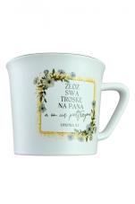 Nadruk na filiżance: Bóg jest dobry Nadruk na spodku: Cały czas