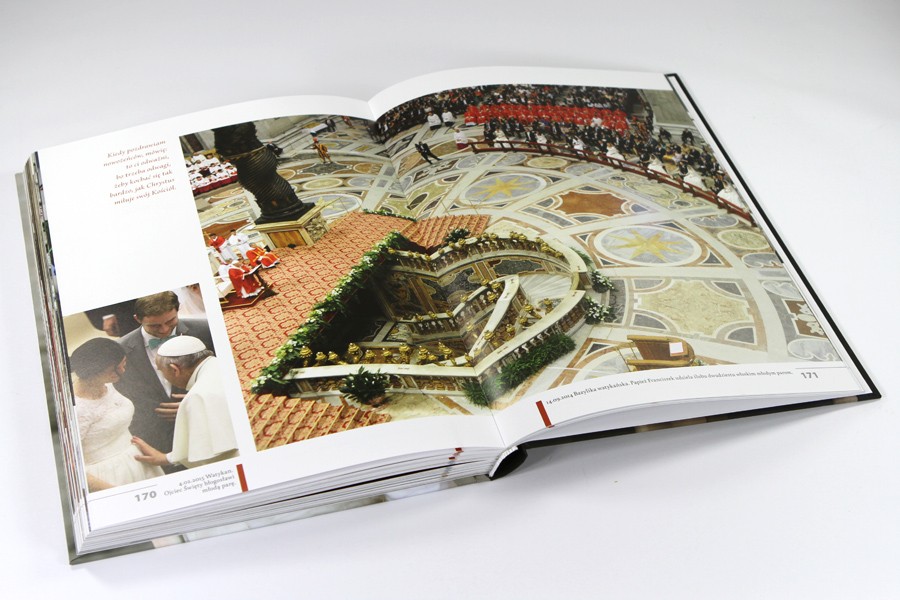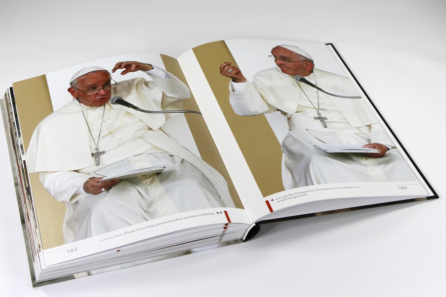 Album podzielony jest na trzy części (Spotkania, Modlitwa, Gesty). Fotografie pokazują Ojca Świętego zarówno w trakcie uroczystych i doniosłych celebracji, jak i podczas codziennej służby na Tronie Piotrowym.Te zdjęcia powinien zobaczyć każdy, kto chce poznać Franciszka i ujrzeć jego pontyfikat w pełnym świetle.