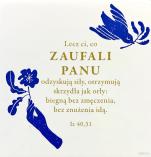 Napis: Gdy się położę, zasypiam spokojnie, bo Ty sam jeden, Panie, pozwalasz mi mieszkać bezpiecznie. Ps 4,9