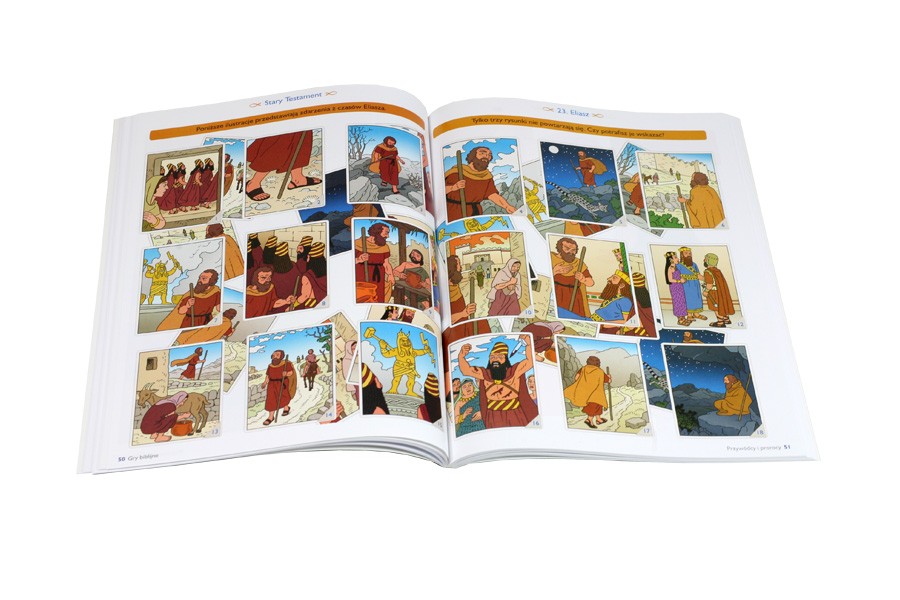 Prezentowana publikacja zawiera różnorodne zadania, których rozwiązywanie służy przyswajaniu lub powtarzaniu treści w sposób łatwy i przyjemny – przez zabawę. Nie tylko wyróżnia się ona walorami dydaktycznymi, wspomagającymi ogólny rozwój umiejętności poznawczych u dzieci, ale także stanowi oryginalną i ciekawą pomoc metodyczną dla katechetów. Pozwoli im zaktywizować uczniów przez układanie puzzli, porządkowanie komiksów pod względem chronologii zdarzeń, szukanie różnic, rozwiązywanie zagadek, układanie rozsypanek wyrazowych itp., aby treści biblijne zostały lepiej przyswojone. Zaproponowane w książce gry można zastosować, nawiązując do poprzednich zajęć, wprowadzając w nowy temat czy zachęcając do zgłębiania treści biblijnych.