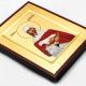 Ta ręcznie wykonana ikona jest wybraną kopią oryginalnej ikony bizantyjskiej. Wykonana została na płótnie lnianym wklejonym w drewno. Tło ikony stanowi sproszkowane złoto.