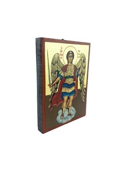 Ikona przedstawiająca Michała Archanioła, wykonana na desce. Do zawieszenia na ścianie.