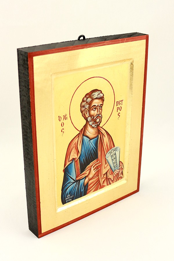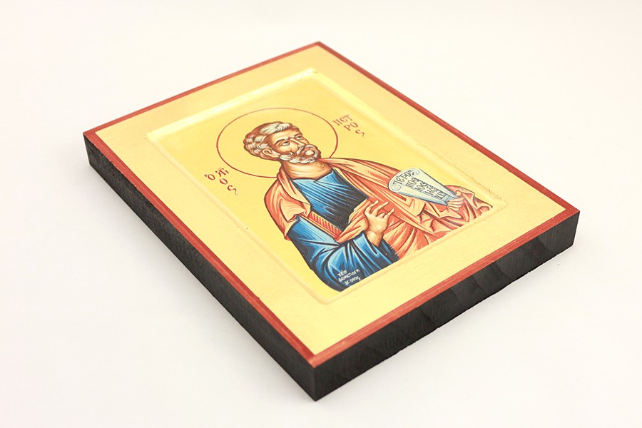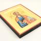 Ta ręcznie wykonana ikona jest kopią oryginalnej ikony bizantyjskiej. Wykonana została na płótnie lnianym wklejonym w drewno. Tło ikony stanowi sproszkowane złoto.
