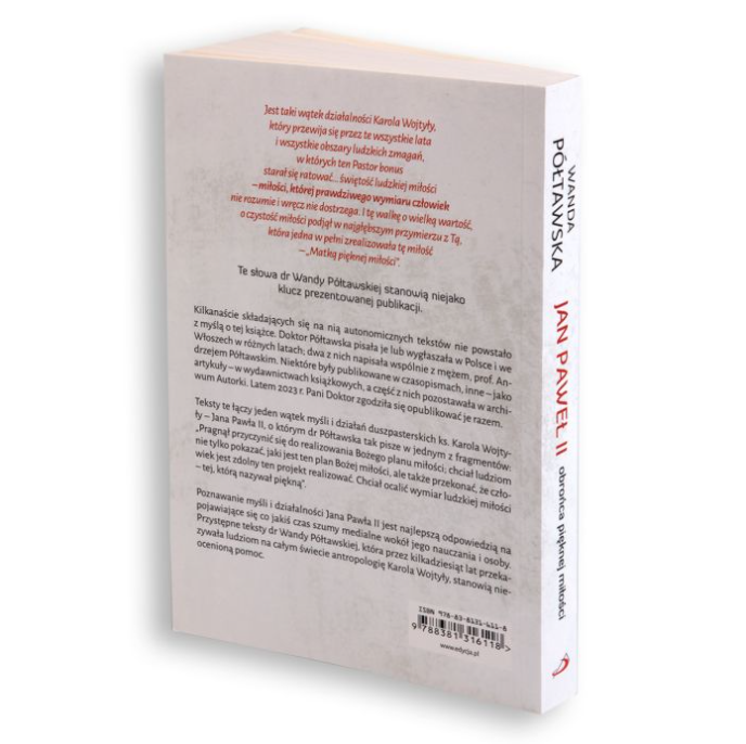 Publikacja to kolejne przypomnienie dla każdego z nas, że prawdziwa miłość nie zabija, lecz zabezpiecza los dziecka, które jest jej owocem. Trzeba ją jednak uczynić celem, a zarazem sposobem życia. Tego uczył nas św. papież Jan Paweł II, a Wanda Półtawska pokazała, jak tego dokonać.