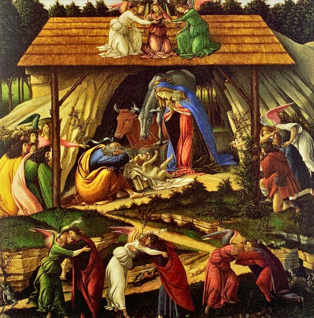 Na pierwszej stronie kartki wykorzystano fragment obrazu Mistyczne Narodzenie Sandro Botticellego (1500). W środku natomiast znajduje się fragment hymnu z Jutrzni Uroczystości Narodzenia Pańskiego. Tekst hymnu podany jest za Śpiewnikiem Pelplińskim.