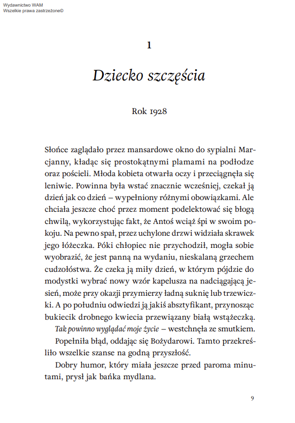 Czasem trzeba przebyć długą drogę prowadzącą przez cierpienie, lęk i tęsknotę, by odnaleźć kogoś, kto da nam nadzieję. Marcjanna, kobieta z przeszłością, w końcu otwiera serce na nową miłość. Uczucie to dojrzewa w cieniu dramatycznych wydarzeń. Jej syn zostaje porwany i życie rodziny w jednej chwili rozpada się jak domek z kart.