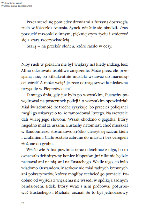 Targany koszmarami wojny Eustachy postanawia szukać ratunku u najlepszego lekarza w Krakowie. W Alinie odnajduje nie tylko ukojenie, ale i światło, które rozprasza jego wewnętrzny mrok – nawet jeśli nadal nie wierzy, że zasługuje na miłość.
