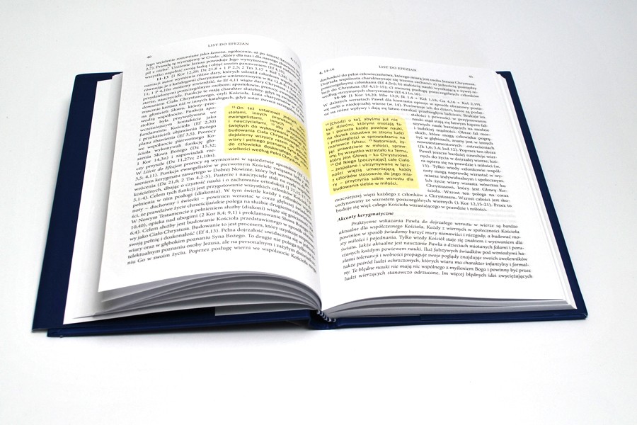 Składa się on z pięciu tomów i odnosi do treści całego Nowego Testamentu. Na następujących po sobie stronach, czytelnik znajdzie kolejne fragmenty wybranych ksiąg i odpowiadające im komentarze.