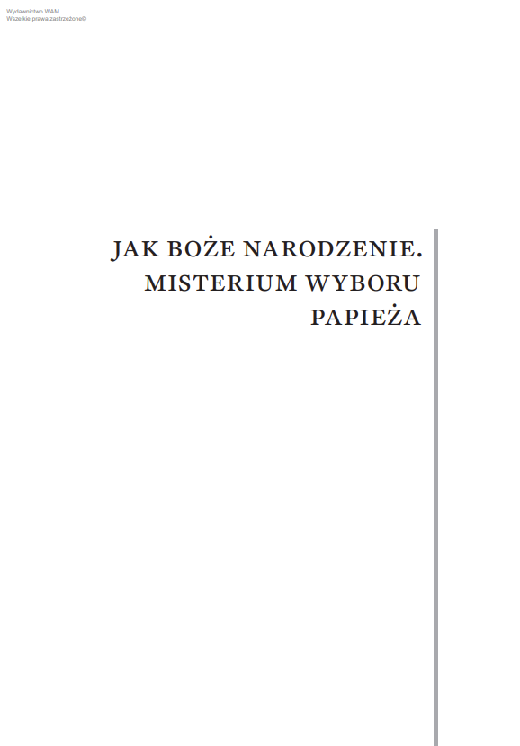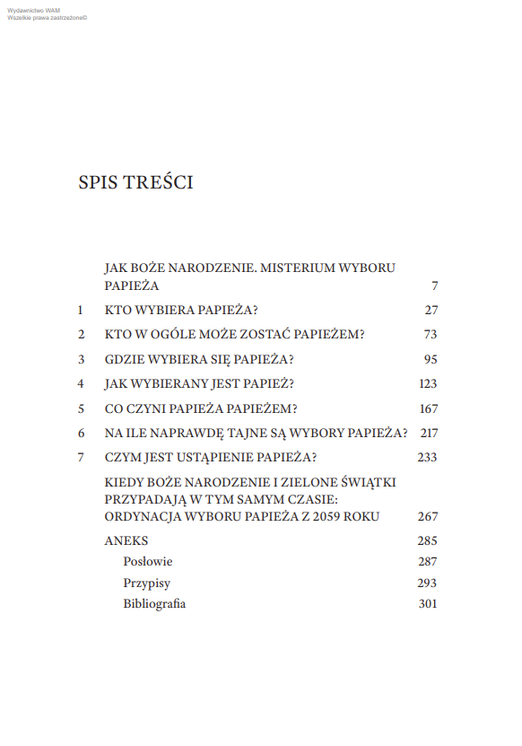 Autor szuka odpowiedzi w barwnej historii papiestwa. Zabiera czytelników na „synod trupi”, gdy papież Stefan VI kazał wykopać z grobu ciało swojego poprzednika, aby go osądzić. Opowiada o tym, jak przez ponad trzy lata kardynałowie nie byli w stanie wybrać następcy Klemensa IV. Pokazuje, jak zasady wyboru swoich następców zmienili Jan Paweł II i Benedykt XVI.