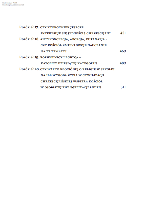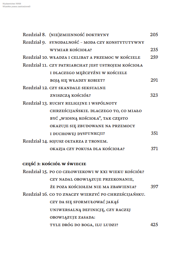 W obliczu obecnego kryzysu Kościoła rodzi się wiele pytań: co poszło nie tak z rozwojem wspólnoty założonej przez Jezusa z Nazaretu? Czy skandale seksualne ją zniszczą? Co dzisiaj znaczy być katolikiem? Czy warto toczyć spory o miejsce religii w szkole, w polityce, w życiu publicznym? Czym powinien kierować się katolik – posłuszeństwem nakazom czy własnym sumieniem?