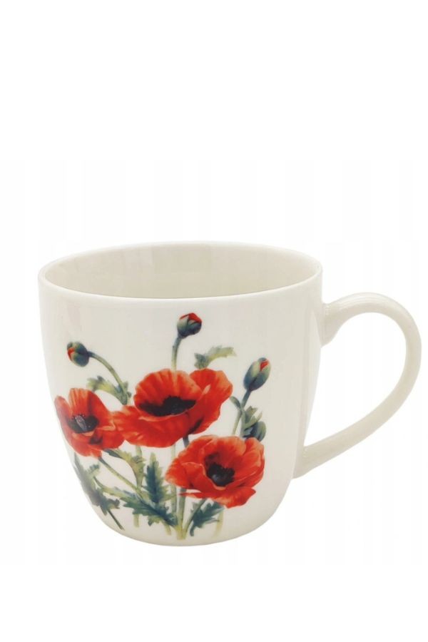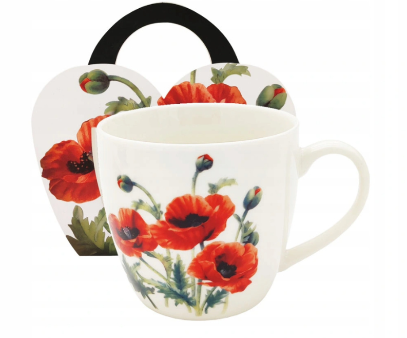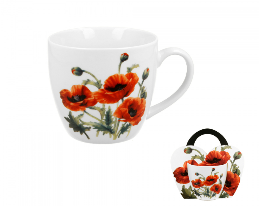 Duży kubek wchodzący w skład kolekcji Duo Classic. Wykonany z porcelany New Bone, charakteryzującej się elegancką i naturalną kremowo-białą barwą z delikatnym połyskiem, a także wyjątkową wytrzymałością przy zachowaniu lekkości i delikatności. Doskonały do przyrządzania ulubionej kawy i aromatycznej herbaty. Linia zdobiona motywem wyrazistych maków w soczyście czerwonym kolorze. Piękny wzór maków na zestawie wniesie do twojego domu odrobinę wiosny i lata.