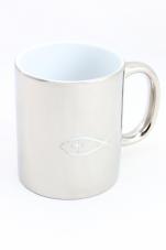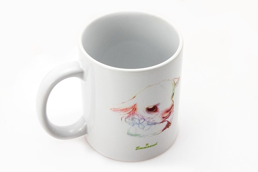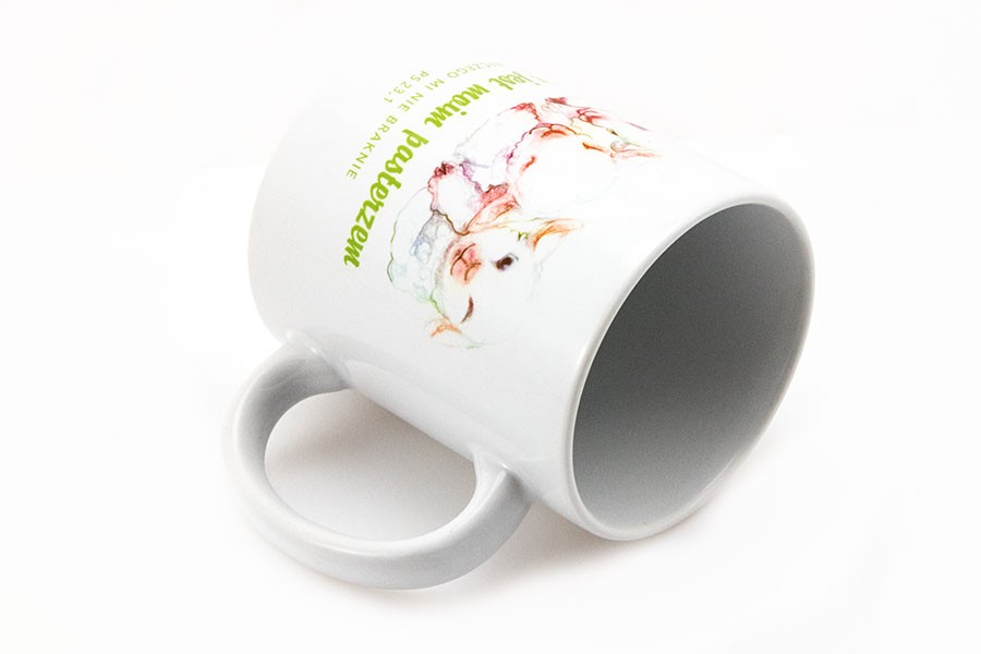 Kubek biały z białym środkiem i białym uchem.