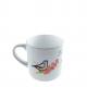 Kubek w kolorze białym z kolorowym nadrukiem i napisem: Zachowaj mnie Boże, bo chronię się u Ciebie.