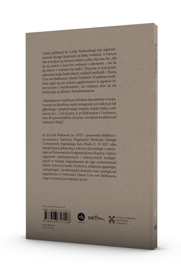 Celem publikacji ks. Lecha Wołowskiego jest zaprezentowanie takiego spojrzenia na łaskę i wolność, w którym oba te pojęcia są nierozerwalnie z sobą złączone, bo „nie da się mówić o łasce bez wolności i odwrotnie – nie da się mówić o wolności bez łaski”. Pomocne w tym przedsięwzięciu będą dzieła dwóch wielkich myślicieli – Hansa Ursa von Balthasara i Józefa Tischnera. Wyjątkowo wnikliwie zajęli się oni owymi zagadnieniami w aspekcie historycznym i współczesnym. Ich refleksje, choć się nie pokrywają, są zbieżne i komplementarne.