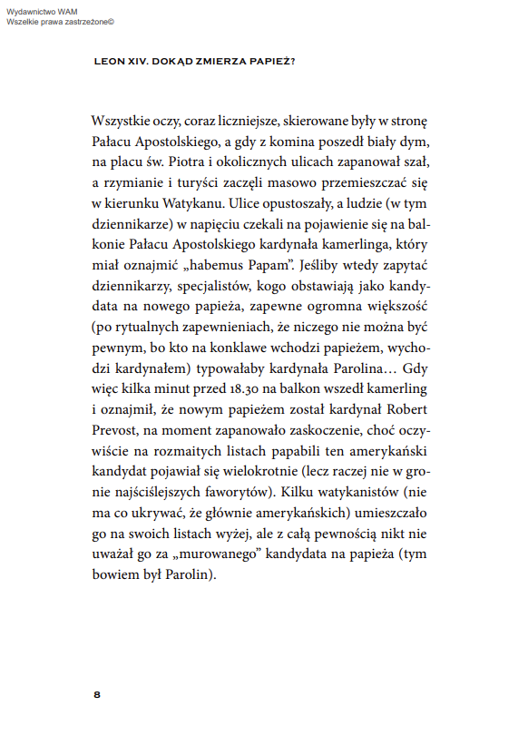 8 maja 2025 roku nad dachem Kaplicy Sykstyńskiej uniósł się biały dym. Kardynałowie zgromadzeni na konklawe dokonali wyboru 267. papieża, którym został Amerykanin – Robert Francis Prevost, augustianin.