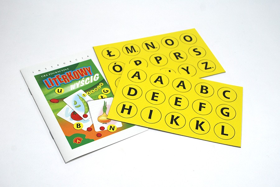 Znakomita gra na spostrzegawczość i refleks. Jest również dobrym ćwiczeniem właściwego postrzegania i interpretacji znaku literniczego. Zasady są bardzo proste. Gracze na przemian odkrywają kartę, a następnie ścigają się w układaniu z liter właściwego wyrazu pasującego do obrazka na karcie. Wyzwala to wiele emocji i gwarantuje świetną zabawę. Atrakcyjność gry wzbogaca jej drugi, równie interesujący wariant.