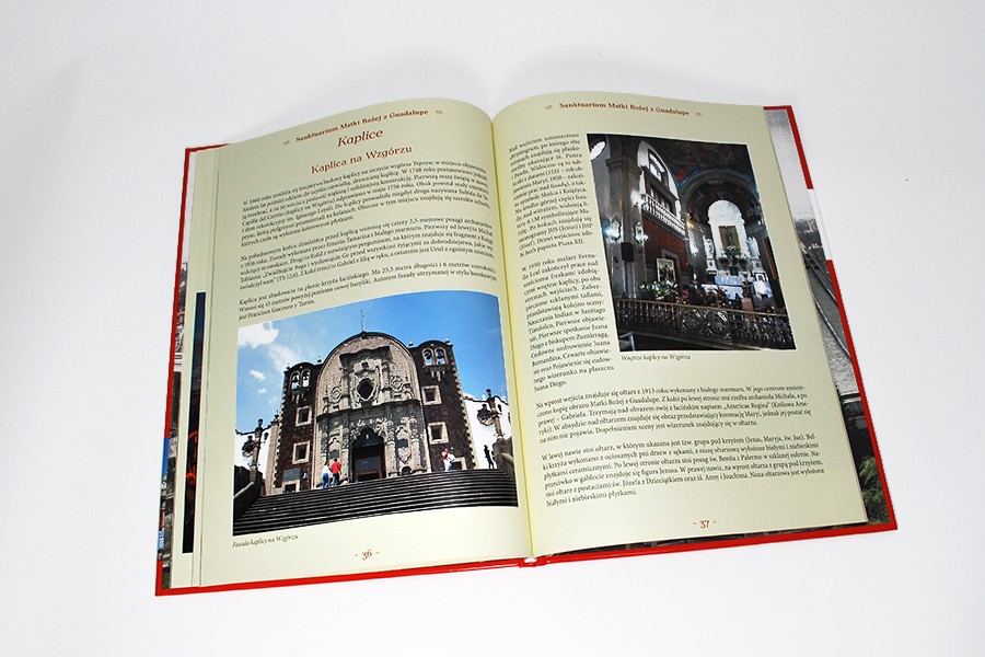 Album poświęcony objawieniom maryjnym w Meksyku, historii życia św. Juana Diego oraz cudownemu, słynnemu na całym świecie wizerunkowi Matki Bożej z guadelupiańskiego sanktuarium. Zdjęcia obrazują architekturę sakralną, w tym kaplice (na Wzgórzu, Indian, Źródełka, Róż, Przysiąg), dzwonnicę, cmentarz Tepeyac, muzeum i baptysterium. Osobny rozdział poświęcony został polskim akcentom w Meksyku, mieście zamieszkiwanym przez ok. dwa tysiące Polaków. Wymienione zostały tu pomniki, rzeźby i tablice upamiętniające zasłużonych Polaków, a także ulice i instytucje noszące polskie nazwy. Odnotowano też kolejne wizyty Jana Pawła II, który aż pięciokrotnie odwiedził Meksyk za swojego pontyfikatu. Publikację zamykają modlitwy, litania i nowenna do Matki Bożej z Guadalupe.