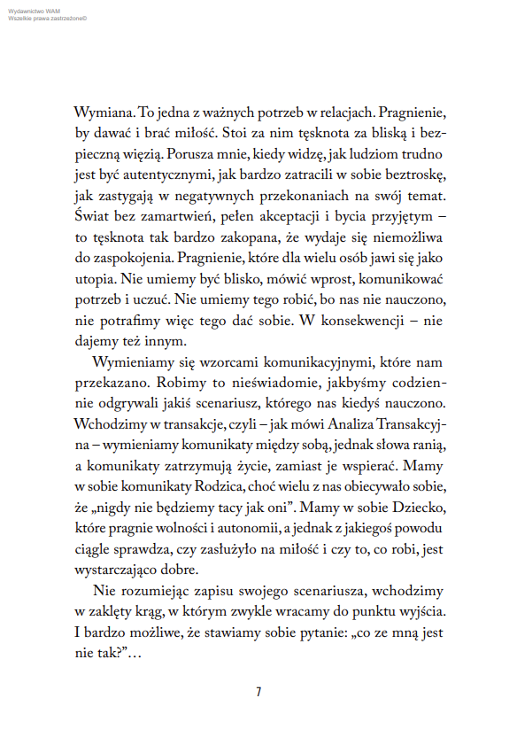 Jestem wdzięczna, że Zbyszek zechciał napisać tę książkę. Subtelnie pokazuje w niej, jak zrozumieć ściśnięte Dziecko w sobie, i daje nadzieję na zmianę oraz wybór własnego scenariusza życia. Myślę o sobie jak o mamie chrzestnej tej publikacji, lubię ją bardzo i mam nadzieję, że Ty też ją polubisz i odnajdziesz w niej różne kawałki, które pozwolą Ci zrozumieć siebie.