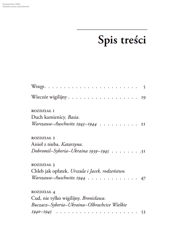 W domu pachnie grzybami i makiem, a w pokoju stoi choinka rozświetlona świeczkami, udekorowana aniołami z papieru… – to obraz najpiękniejszych świąt w roku, najbardziej rodzinnych. Był czas, gdy musiały wystarczyć wspomnienia, bo Wigilię trzeba było spędzić w Auschwitz-Birkenau, w obozie Gross-Rosen, w Ravensbrück czy na obczyźnie. Każdy starał się jak mógł, aby choć na chwilę doświadczyć cudu świąt, by nie zabrakło ciepła i nadziei.