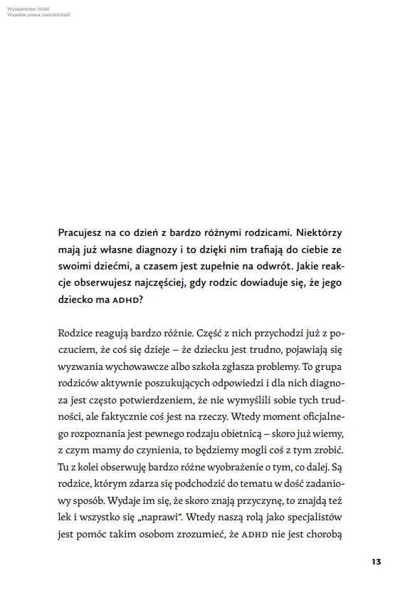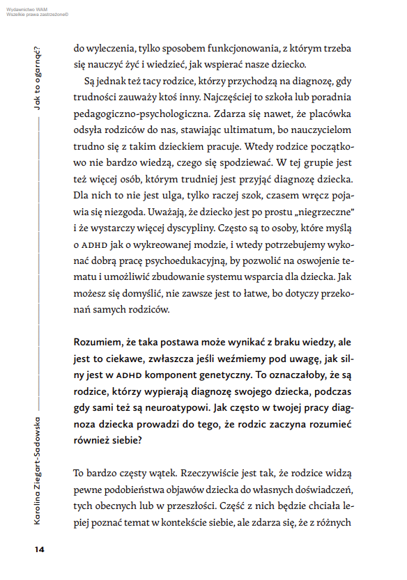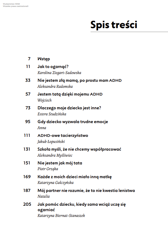 Dorosłe osoby z ADHD opowiadają o swojej diagnozie i jej wpływie na wychowywanie dzieci. Poruszają tematy relacji partnerskich, presji społecznej oraz dziedziczonych schematów. Ich osobiste historie uzupełnia komentarz psycholożki i psychoterapeutki pracującej z dorosłymi osobami z ADHD i ich dziećmi. Dzięki nim lepiej zrozumiesz działanie swojego neuroróżnorodnego mózgu i mechanizmy stojące za codziennymi wyzwaniami.