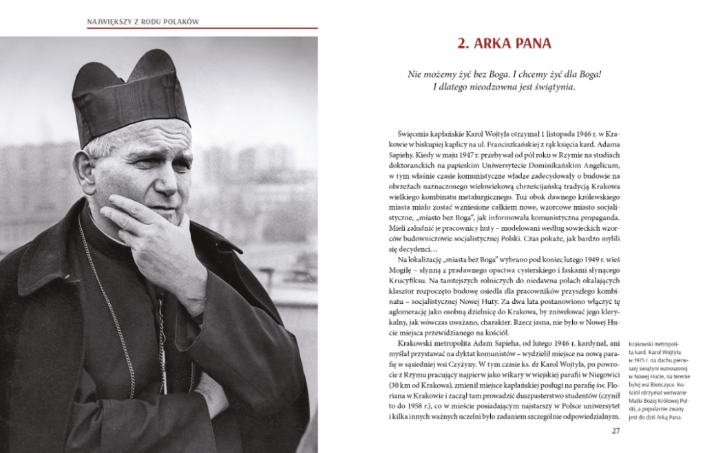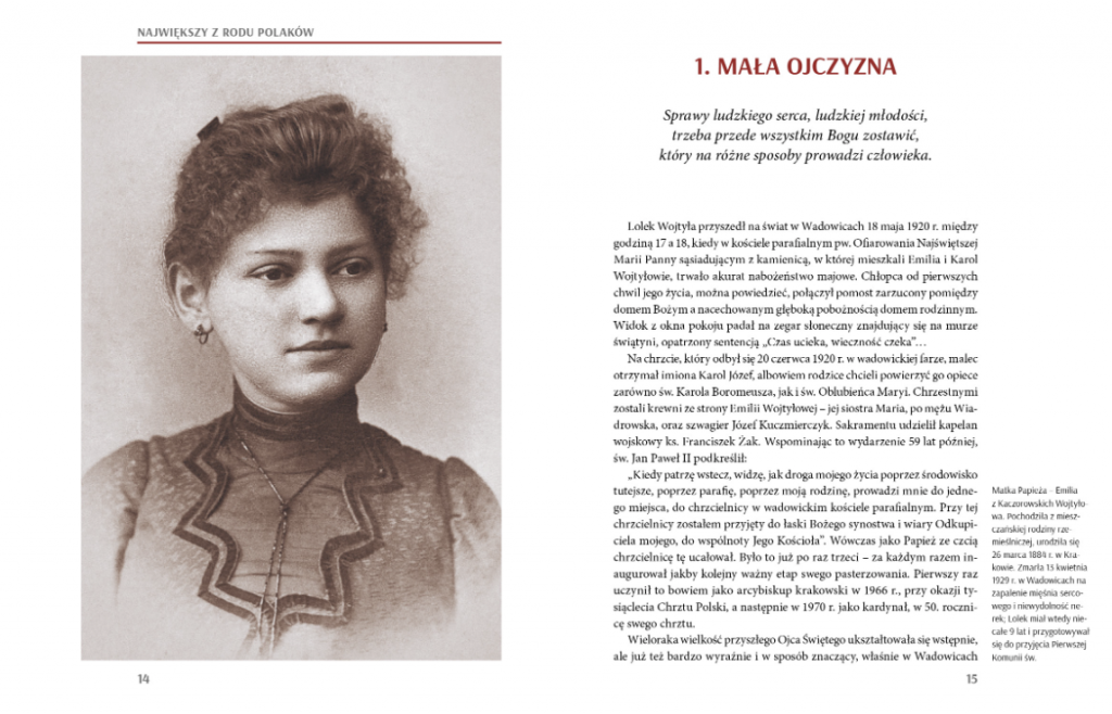 Największy z rodu Polaków – to określenie wobec Jana Pawła II pojawiło się już na początku jego pontyfikatu, a potem było powszechnie wypowiadane z dumą przy bardzo wielu okazjach, w tysiącach miejsc, przez ludzi Kościoła i przez zwykłych wiernych, ale też przez polityków i środki masowego przekazu. Podziw i szacunek wobec Ojca Świętego, okazywane mu już za życia, są doskonale widoczne na wspaniałych zdjęciach wielkiego artysty fotografika Adama Bujaka. Widzimy zachowania Jana Pawła II i jego postawę – prawdziwie na miarę świętości. Widzimy niesamowity entuzjazm i wielkie wzruszenie ludzi spotykających się z nim.