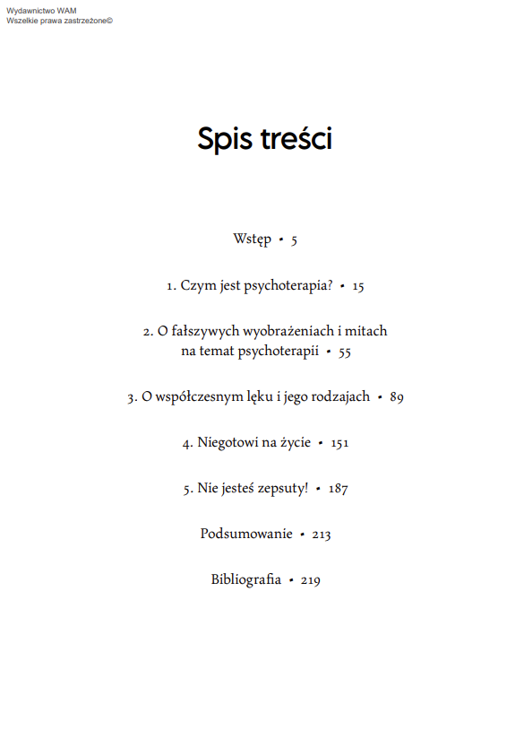Nie każda trudność wymaga interwencji psychoterapeuty. Ta książka wyjaśnia, kiedy psychoterapia wspiera rozwój, a kiedy staje się ucieczką od życia. Pokazuje, jak dostrzegać własne zasoby i odważnie mierzyć się z wyzwaniami, które są integralną częścią codzienności.