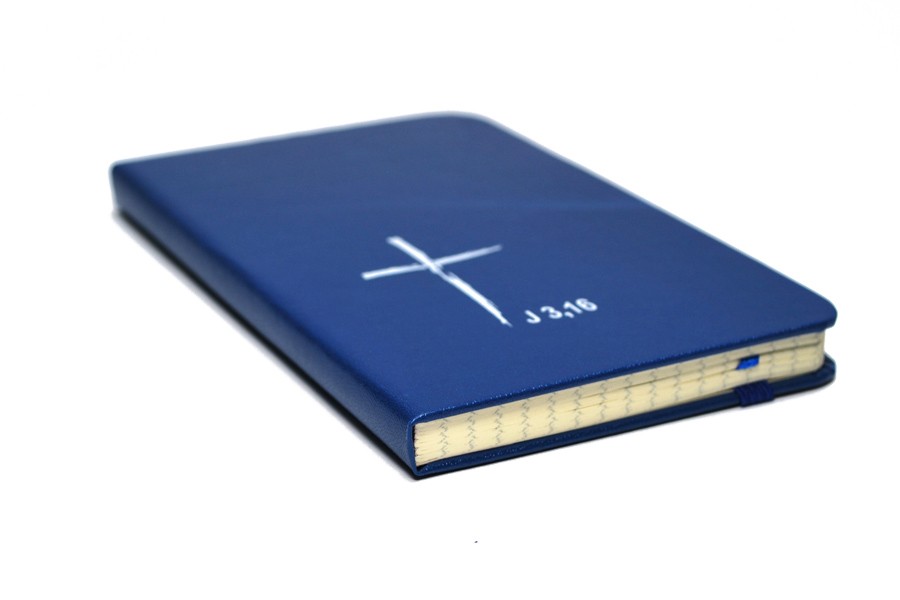Nadruk: Krzyż.J3,16. Kolor okładki niebieski.