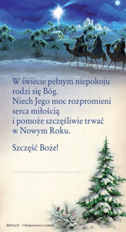 Obrazki kolędowe pakowane po 100 szt., z tekstem na rewersie.