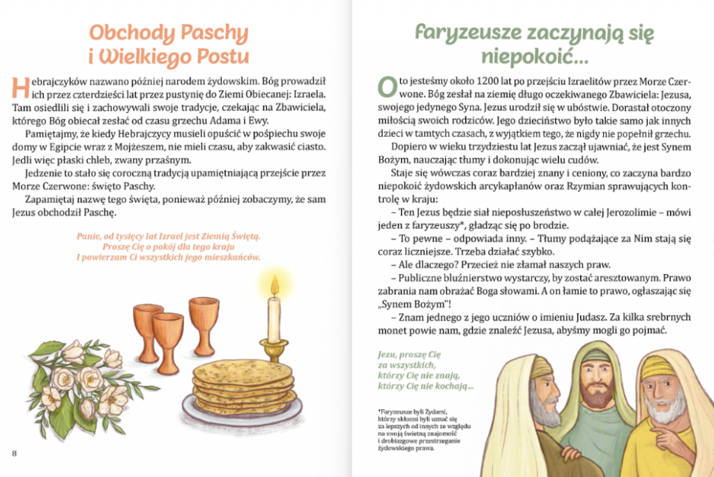 Po opowieści o święcie Paschy obchodzonej przez Hebrajczyków, ucieczce z Egiptu i przejściu przez Morze Czerwone, przeżyjemy krok po kroku ostatnie chwile życia Jezusa, Jego ostatnią wieczerzę, pojmanie, potępienie, a następnie śmierć… by następnie radować się Jego zmartwychwstaniem!