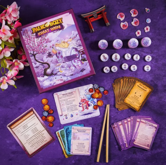 Kwiat wiśni to dodatek do gry Palec boży, który zabierze was do mistycznego świata japońskiej mitologii. Do panteonu Pępka Świata dołączy nowe bóstwo. Od teraz będziecie mogli złączyć swoje siły w wariancie drużynowym lub kooperacyjnym oraz zaprosić do gry większą liczbę graczy.