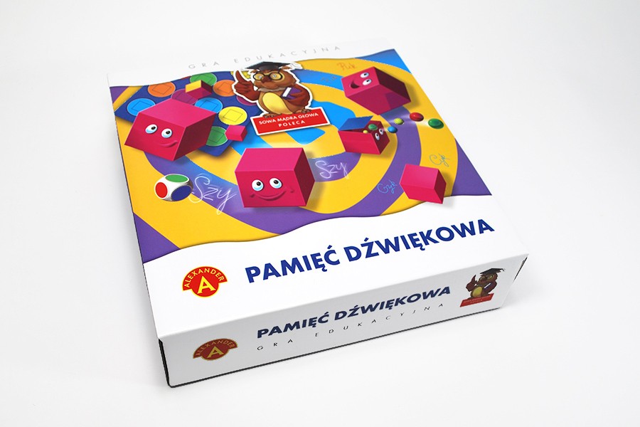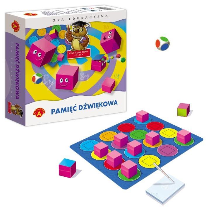 "Pamięć dźwiękowa" to gra dydaktyczna, która wprowadza jej uczestników w świat dźwięku. Jej celem jest nauka uważnego słuchania, koncentrowania się na sygnałach dźwiękowych oraz ich identyfikowanie i różnicowanie. Uczy również zapamiętywania i szybkiego kojarzenia dźwięków. Rozwija pamięć słuchową, wrażliwość słuchową i koordynację słuchowo - wzrokowo- ruchową. Bardzo atrakcyjna i emocjonująca jest również wersja gry z użyciem planszy i kolorowej kostki. Można również zagrać w Pamięć tradycyjną - opartą na wykorzystaniu pamięci wzrokowej, co urozmaica zabawę i jest świetnym treningiem tej pamięci.