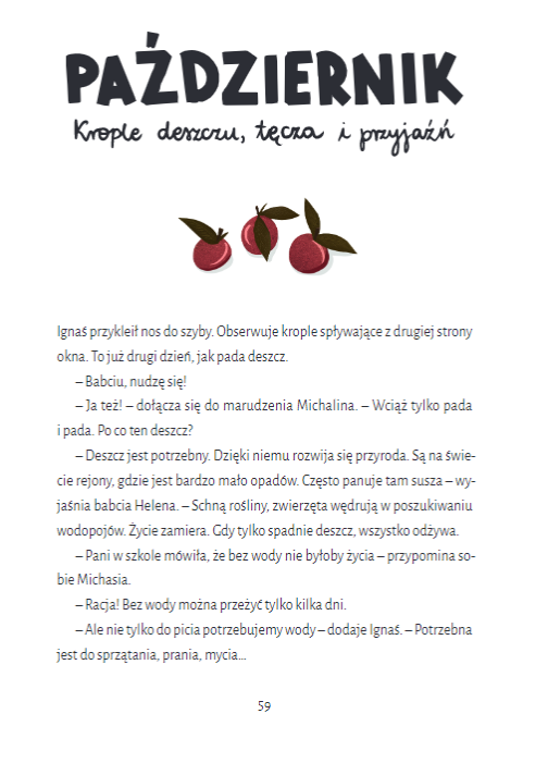 Na tę mądrą książkę dla dzieci (i dorosłych) składa się dwanaście historii z życia Ignasia i jego starszej siostry Michasi. W odkrywaniu świata towarzyszy im babcia Helena – czuła, opiekuńcza, cierpliwie wyjaśniająca złożoność życia. Opowiastki stają się punktem wyjścia do rozważań nt. Pisma Świętego oraz znalezienia pomysłu na to, co każde dziecko może zrobić, by jego życie stało się lepsze, pełniejsze, by podejmować właściwe decyzje i dokonywać dobrych wyborów.