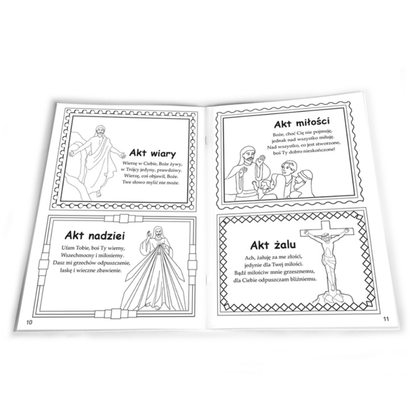 Kolorowanka ułatwia dzieciom poznanie podstawowych modlitw. Poprzez możliwość kolorowania rysunków pomaga w ich lepszym zapamiętaniu. To minikatechizm dla dzieci! W prostej formie została połączona możliwość nauki z przyjemnością kolorowania.