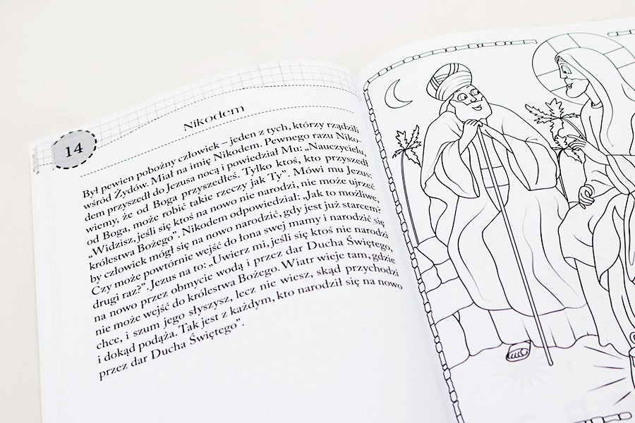 Obok zaadaptowanych dla dzieci opowiadań biblijnych, które dotyczą poszczególnych postaci, znaleźć tu można krzyżówki, labirynty, przeskakiwanki, układanki, zadania matematyczne, kolorowanki i inne łamigłówki. Dzięki nim dzieci mogą wzbogacić swoją wiedzę na temat Ewangelii, znakomicie się przy tym bawiąc.