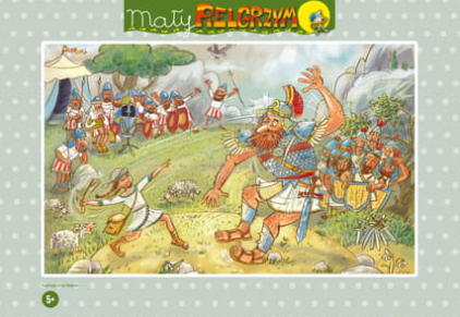 Puzzle przedstawiające scenę walki Dawida z Goliatem.